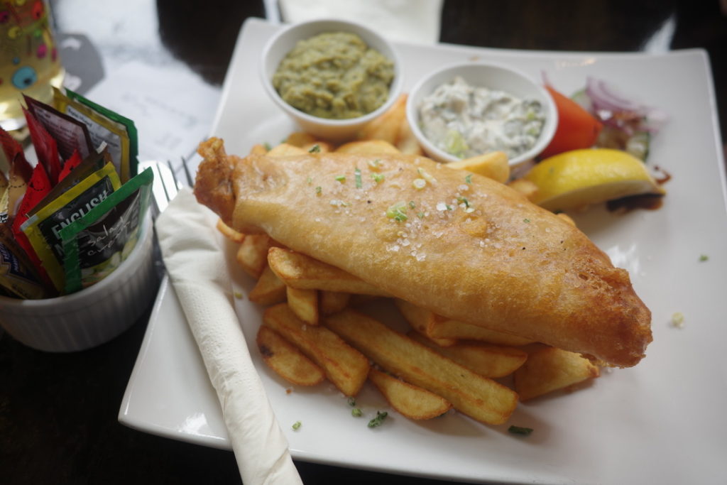 わかりやすくフィッシュ&チップスも。幸せすぎていままでこんな笑顔なことあったか? ってほど笑顔になった。ビールはビーバータウン・ネックオイル・セッションIPA。これ一番好きだった。