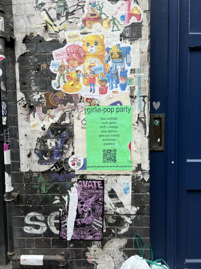 girlie-pop party、QRでInstagramアカウントを見たらガーリーポップなお洋服のポップアップイベントのようだった。近くには「ANIMAL LIBERATION HUMAN LIBERATION」と描かれたポスター。